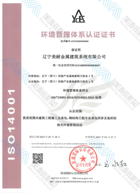 遼寧美耐金屬建筑系統(tǒng)有限公司位于遼寧(營口)沿海產(chǎn)業(yè)基地,專注于預(yù)制金屬建筑系統(tǒng)領(lǐng)域,是一家集工業(yè)建筑設(shè)計、制作、施工及相關(guān)的技術(shù)咨詢與服務(wù)為一體的綜合性服務(wù)企業(yè)。作為國家鋼結(jié)構(gòu)協(xié)會會員、中國建筑金屬結(jié)構(gòu)協(xié)會會員單位與國家高新技術(shù)企業(yè),美耐建筑集建筑工程施工總承包、鋼結(jié)構(gòu)工程專業(yè)承包等多種資質(zhì)于一身,并擁有22項(xiàng)鋼結(jié)構(gòu)建筑領(lǐng)域?qū)@?項(xiàng)軟件著作權(quán)。